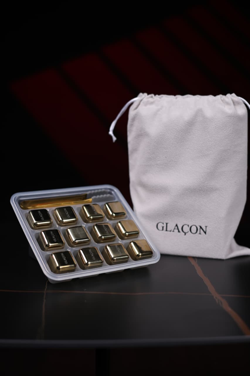 12 Stainless Steel Cubes – Available in Silver or Gold.